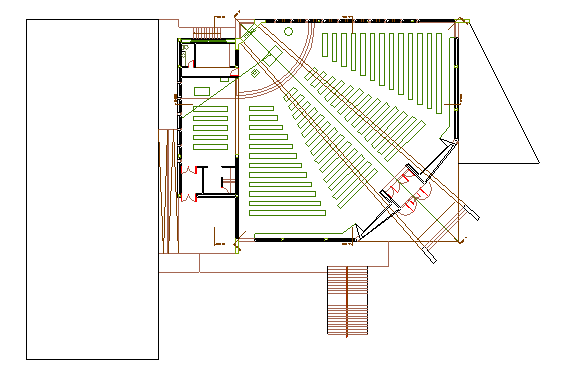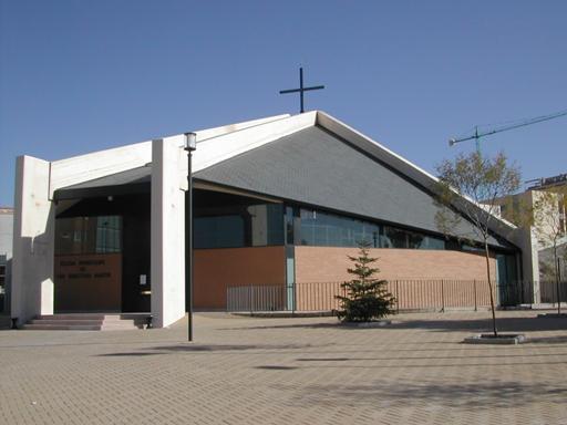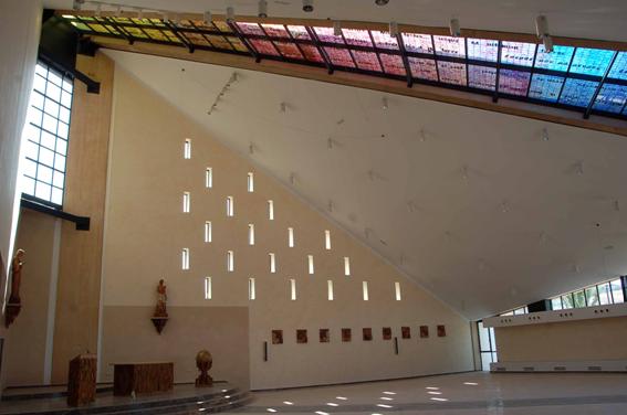 Las condiciones de la parcela han permitido orientar la Iglesia en el sentido litúrgico tradicional, con la cabecera hacia el Este. Así, se establece un tránsito hacia la luz, que queda marcado por el lucernario central. Así, la gradación de espacios se establece desde el atrio de entrada, al oeste, por la flecha de luz hacia el altar. La luz blanca del lucernario se transforma justo encima del altar en una vidriera de color, a través de la cual entra el sol de poniente.